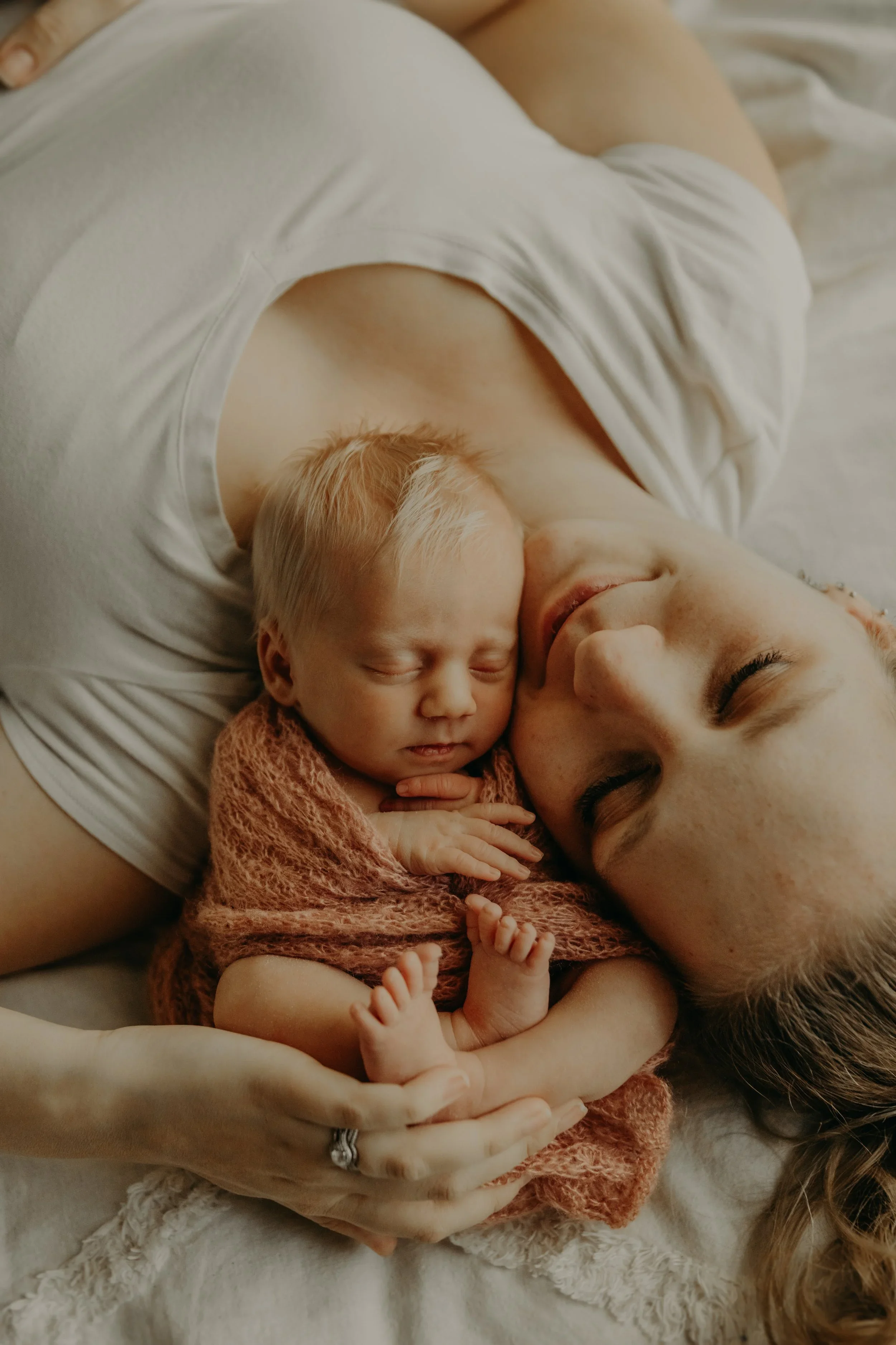 Those first few days go by faster than you can imagine. My studio newborn sessions are designed to slow that down — to create heirloom portraits you'll reach for again and again as the years pass. Every pose is guided by a decade of experience and a genuine love for these early moments.